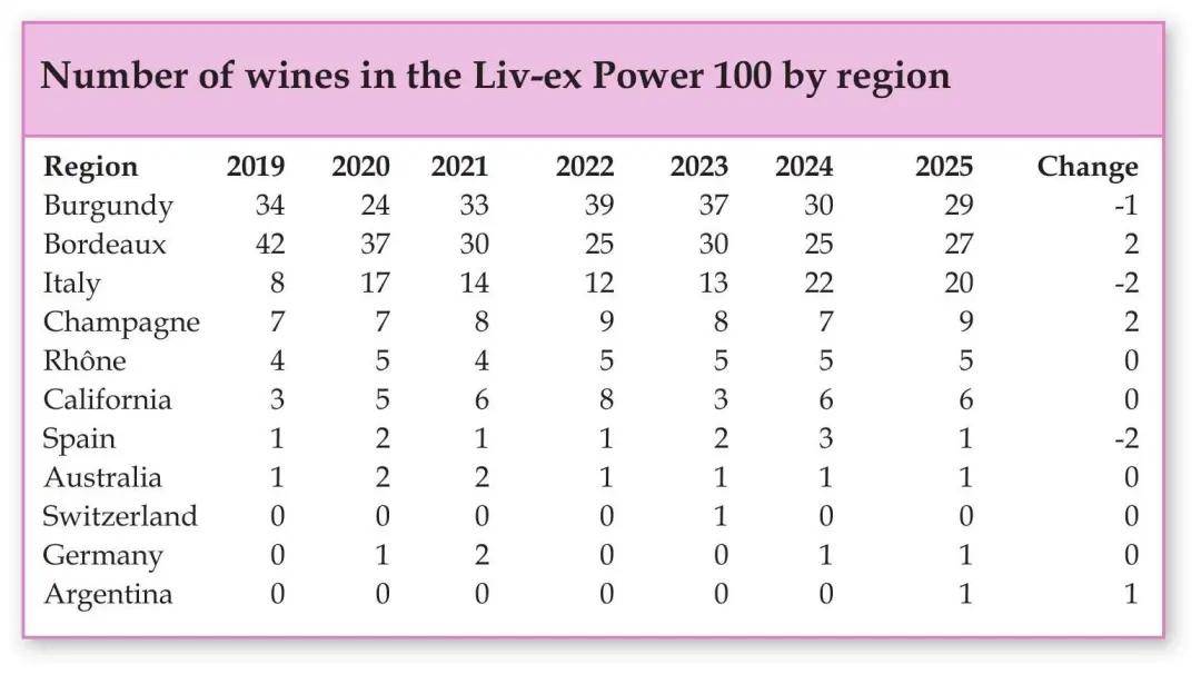 具体来看,勃艮第产区如安慕拉夏酒庄(Arnoux-Lachaux)、乔治·罗诺拉酒庄(Georges Noellat)等此前被资本热捧、价格飙升的新星跌出百大,显示其脱离基本面的溢价正在被挤出;而波尔多产区被认为是“超二级庄”的如靓茨伯庄园(Lynch-Bages)、玫瑰山庄园(Montrose)等凭借极高的交易活跃度排名大幅跃升,显示了市场对波尔多经典核心价值的再度聚焦;而香槟产区的传统头部品牌沙龙(Salon)等则重新进入榜单,印证了其在不确定时期作为硬通货的避险属性。